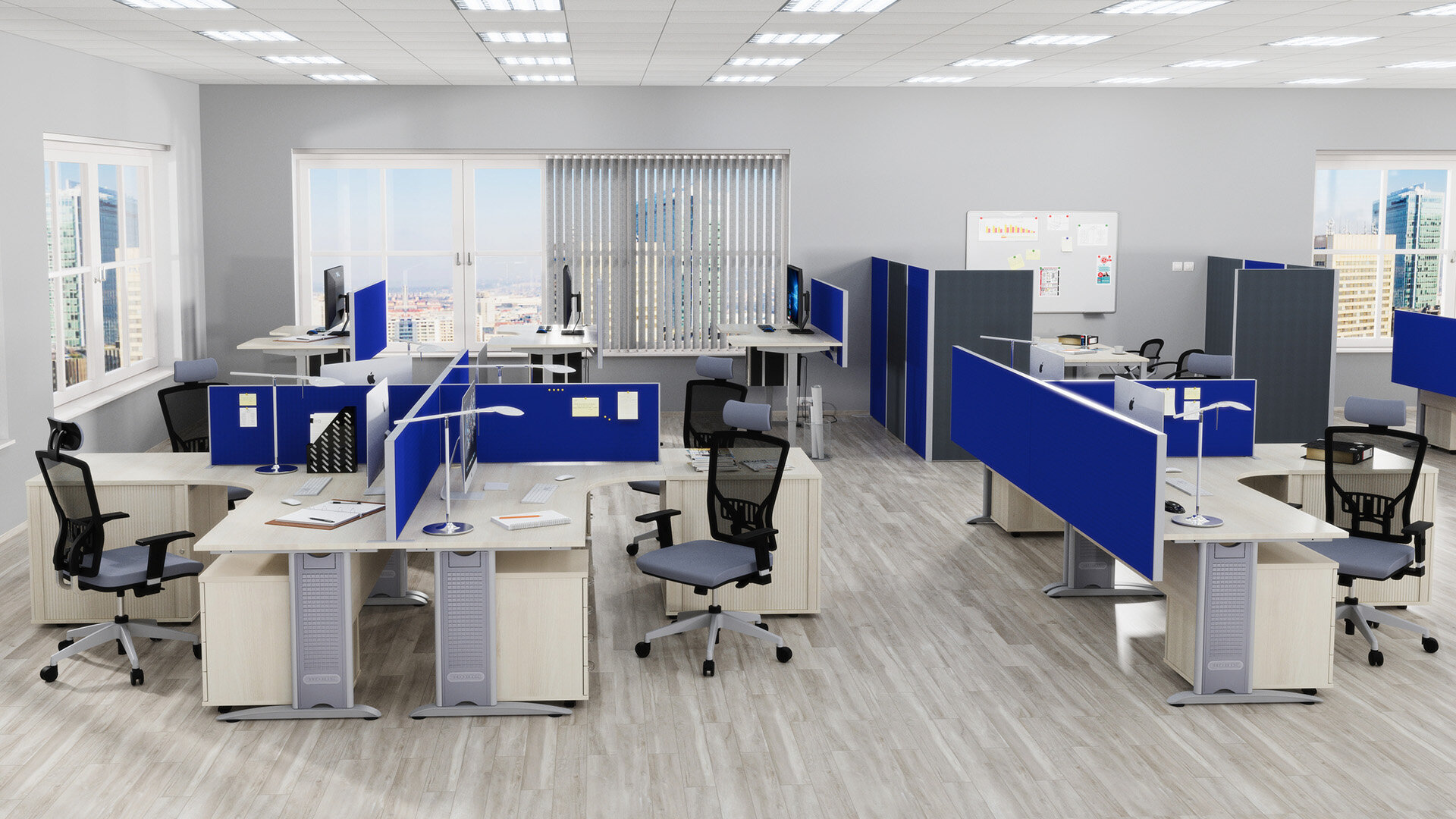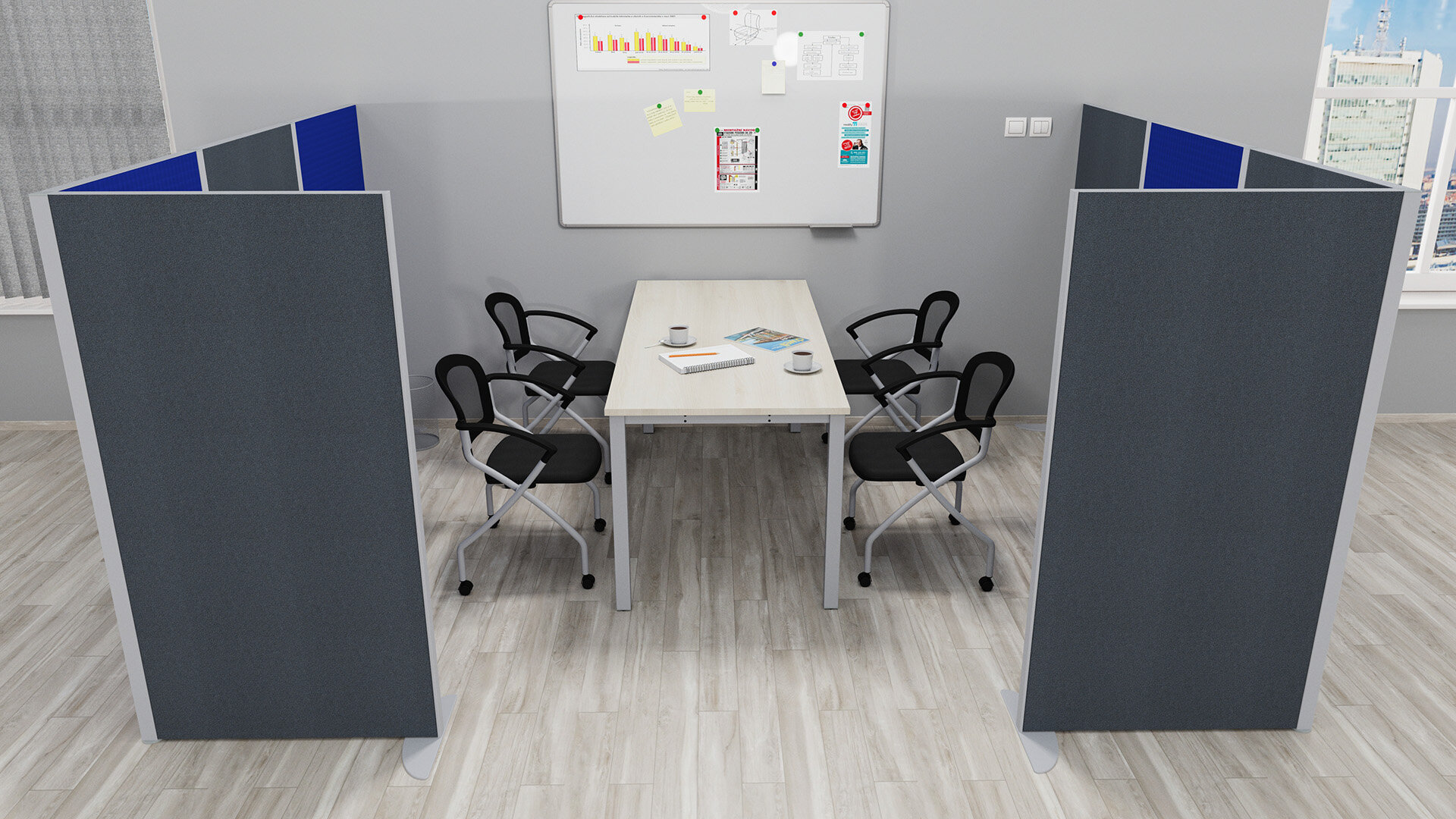 - Die 156,5 cm hohen freistehenden Trennwände werden zur Aufteilung größerer Räume verwendet.