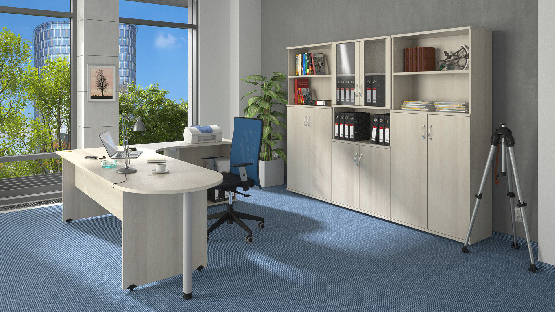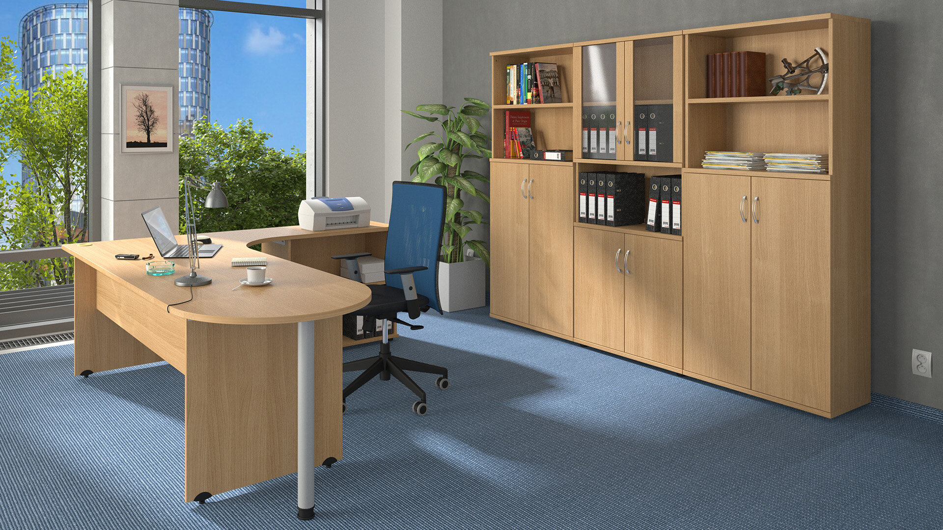 - Az alap 2 mm vastag ABS védőéllel ellátott, 18 mm vastag táblákból készül. – A telt lábak a válaszfallal együtt diszkrét teret képeznek az asztal alatt.
